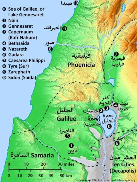 a region south of Lebanon and west of the Jordan River. This included the Sea of Galilee, which was also called Lake Gennesaret and Lake Tiberias.